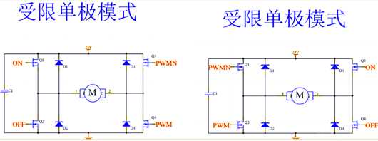 即H橋的上半橋臂用PWM控制,而下半橋臂常開(kāi)。